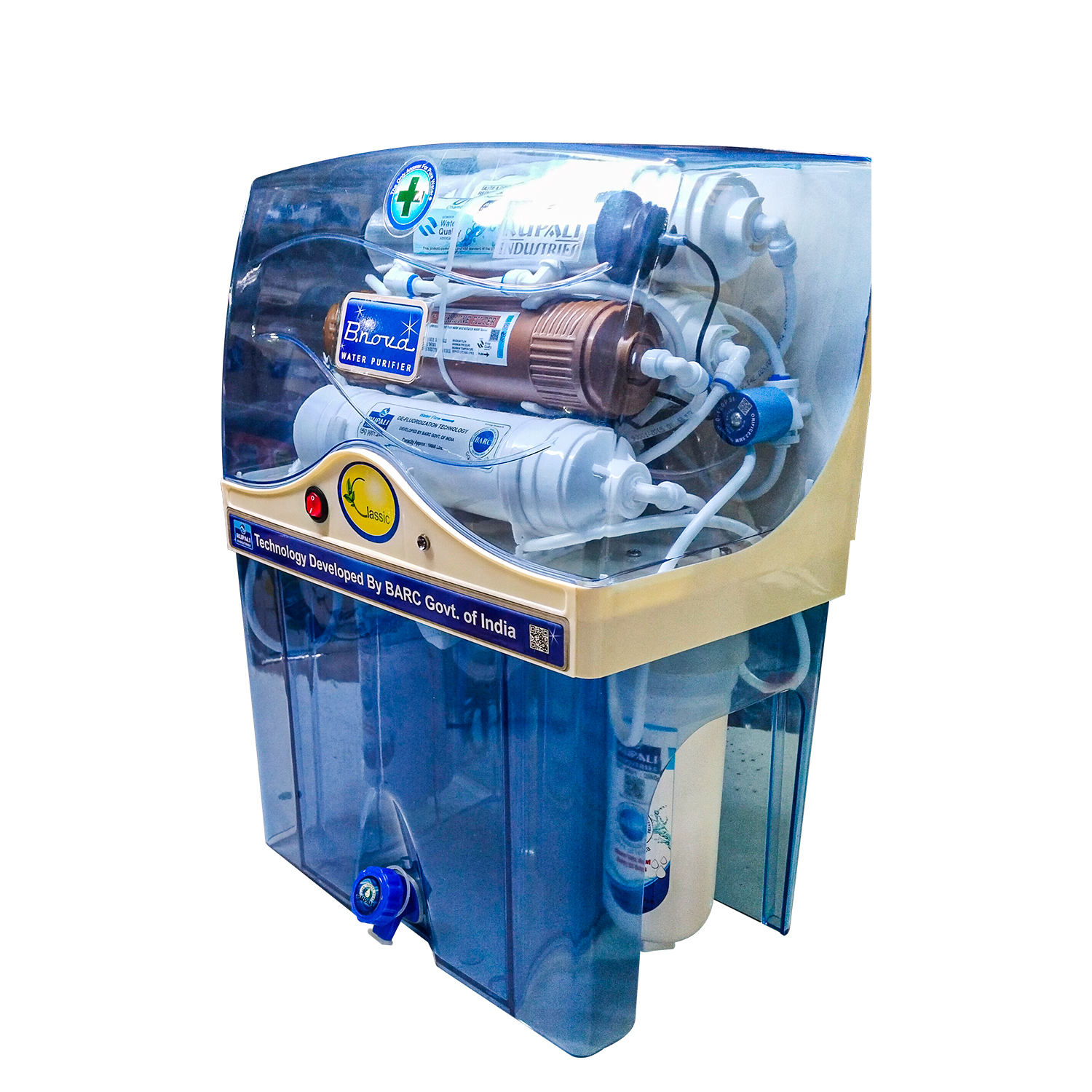 polycarbonate Water Purifier is based on UV+UF+DE-FLORIDE TECHLOGY Filter for Drinking water in home. This water purifier based on ultra filtration membrane technology ( licensed by BARC Govt of India). This technology is more advance with UV+UF TECHNOLOGY water purifier as has advantage of removing turbidity and it is self maintenance technology easily maintain at home no technician is required for maintenance. Non electric water purifiers removes bacteria , virus , spores , turbidity. Its wall mountable and online water filter purifier. This filter does not use any chemical like Chlorine, Bromine or Iodine used for purification which is based on ultra filtration membrane technology ( licensed by BARC Govt of India). thereby providing healthier and tastier drinking water. Its best and low maintenance cost water filter for home compare to other brand as has long service life up to 21000 Ltr water. There after cost of maintenance is very low. As this purifier does not affect TDS and pH its helps to retain essential minerals such as calcium, magnesium which are essential for growth and balance of human body. Pure drinking water cost is around as low as 4 paisa as its gravity based filter works without electricity. This is the best ultra filtration membrane technology ( licensed by BARC Govt of India). water purifier best suitable for tap water, well water , river water, low tds water below 500,