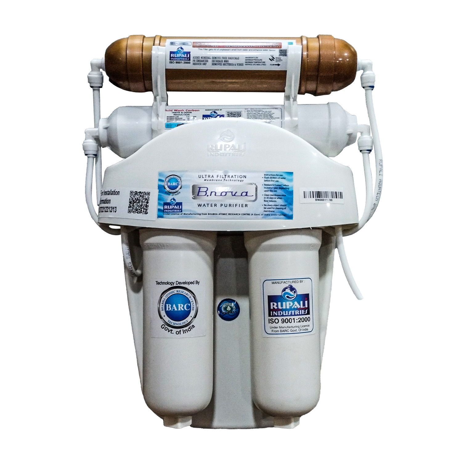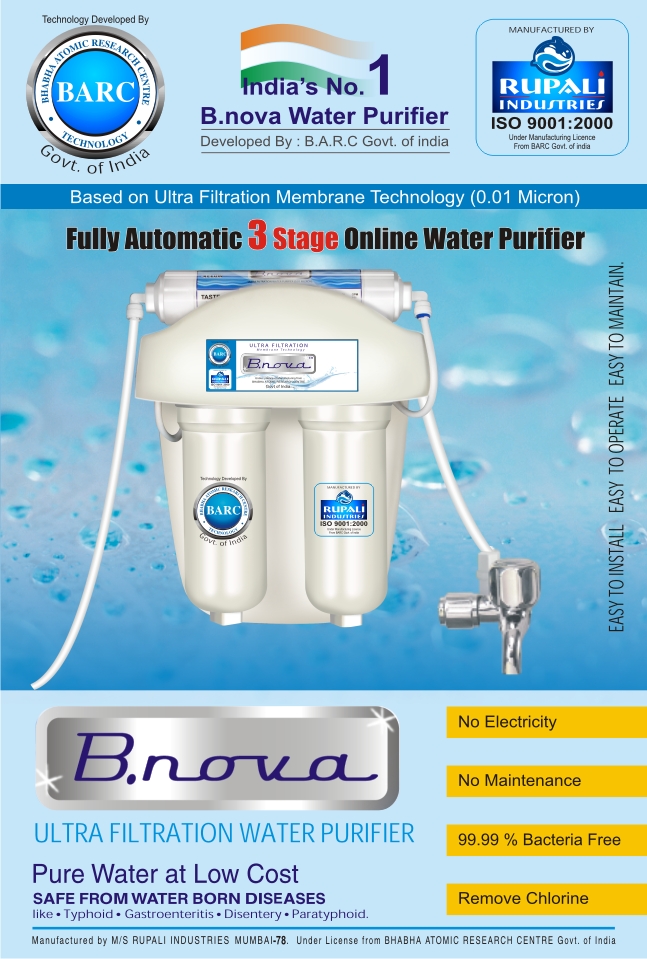 Based on Ultra Filtration Membrane Technology 0.01 Micron developed by BARC Govt. of India