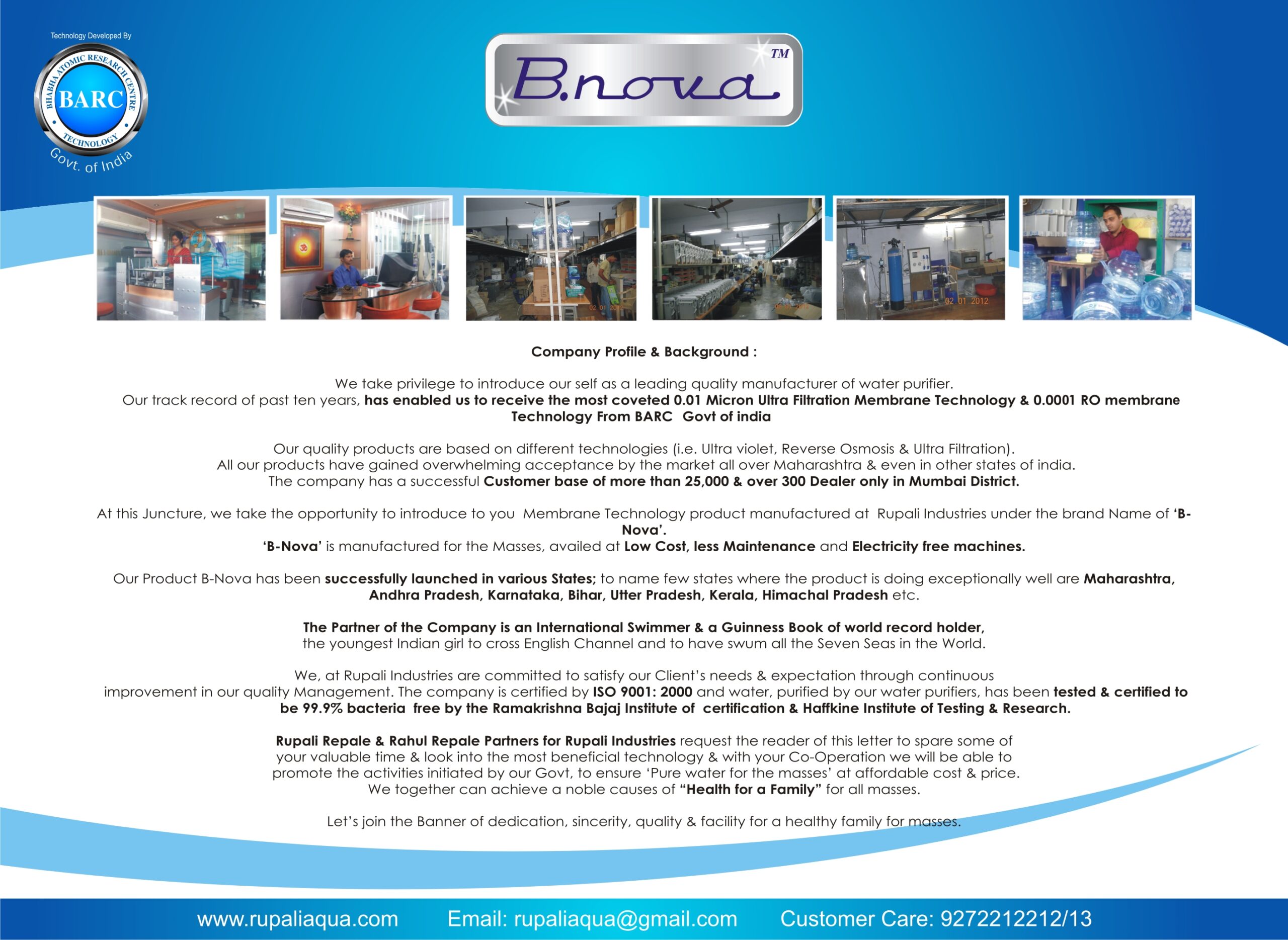 Based on Ultra Filtration Membrane Technology 0.01 Micron developed by BARC Govt. of India